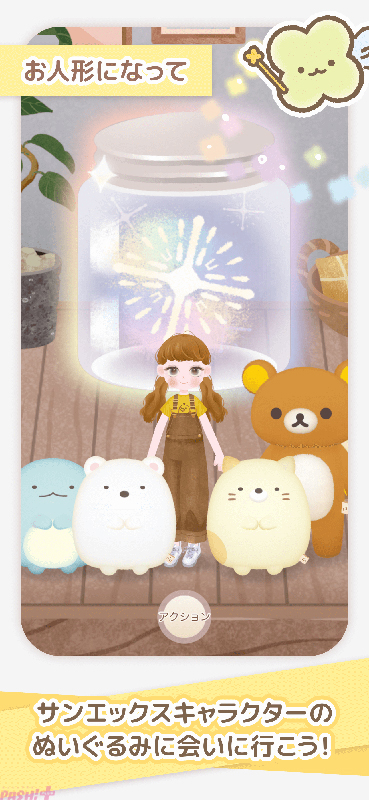 登場するぬいぐるみは、リラックマやすみっコぐらしなどのサンエックスの人気キャラクター。お買い物を楽しみ、お人形とドールハウスを想い想いにコーディネートし、可愛いぬいぐるみとふれあう体験ができます。