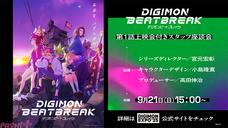 2025年9月20日(土)・9月21日(日)に、東京ドームシティ・プリズムホールで行われる【DIGIMON EXPO’25】にて、『DIGIMON BEATBREAK』第1話の世界最速上映会と第1話上映会付きスタッフ座談会を開催。