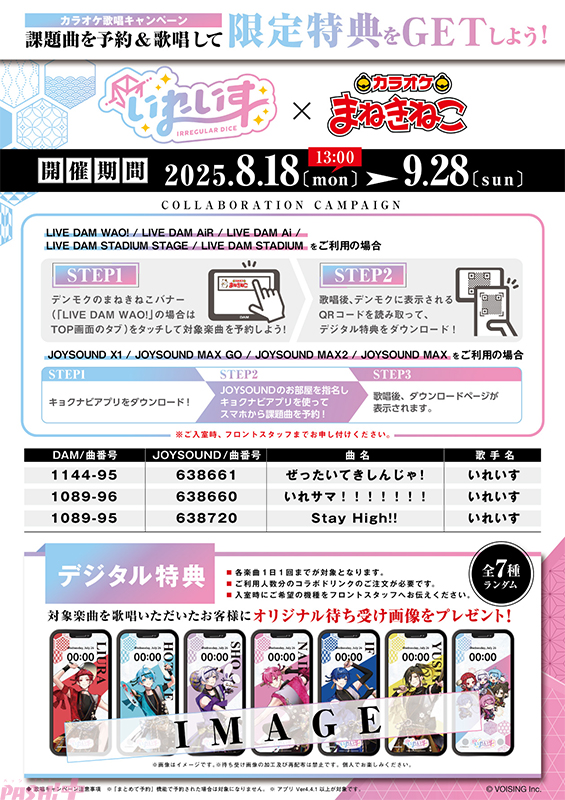 VOISING所属の2.5次元アイドルグループ「いれいす」は、全国に店舗を展開するカラオケチェーン「カラオケまねきねこ」と2025年8月18日(月)~9月28日(日)の期間にコラボキャンペーンを開催します。