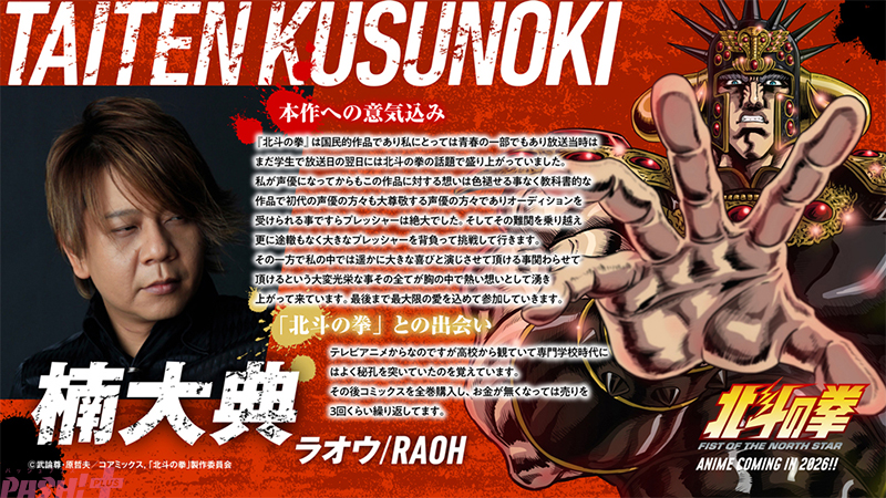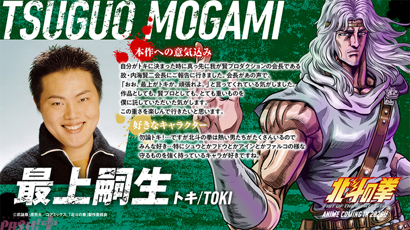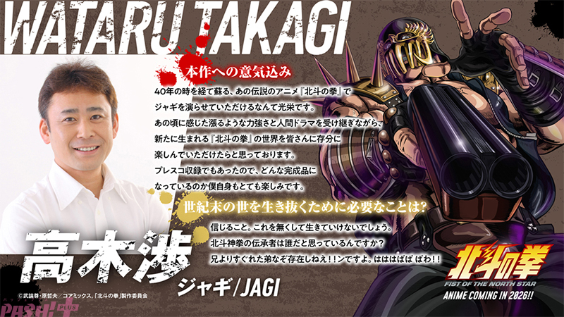 The post アニメ『北斗の拳 -FIST OF THE NORTH STAR-』ジャギ役は高木渉さん、トキ役は最上嗣生さん、ラオウ役は楠大典さんに決定! キャスト解禁PVやコメントも公開 first appeared on PASH! PLUS.