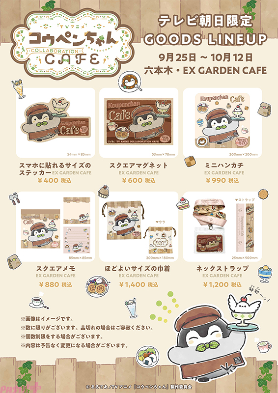 テレビ朝日限定グッズは、EX GARDEN CAFEと同じ、テレビ朝日・本社1Fアトリウムにある「テレアサショップ六本木店」をはじめ、「テレアサショップ東京駅店」、「テレアサショップ ONLINE」にて、9月25日(木)10時から販売します。グッズはどなたでもお求めいただけますので、是非お気軽にご来店ください。