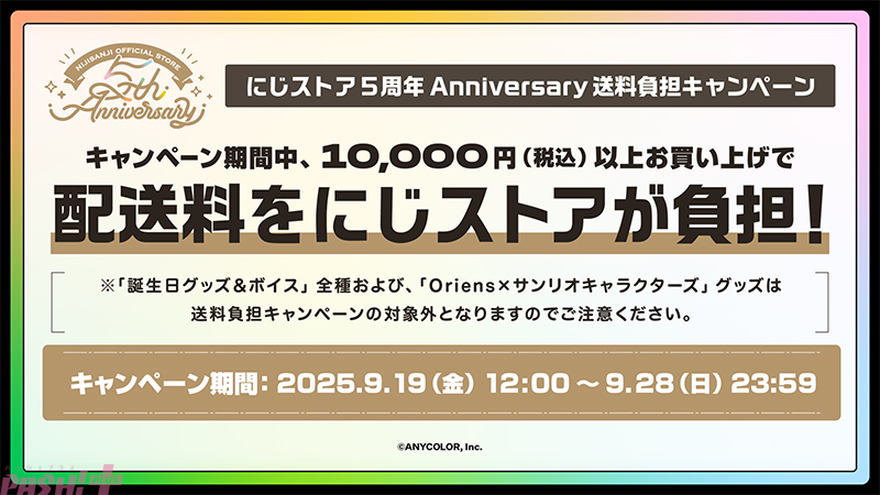2025年9月19日(金)12時より日頃の感謝を込めてにじストア5周年記念キャンペーンを実施! 詳細はにじストア5周年記念キャンペーン特設サイトをご確認ください。