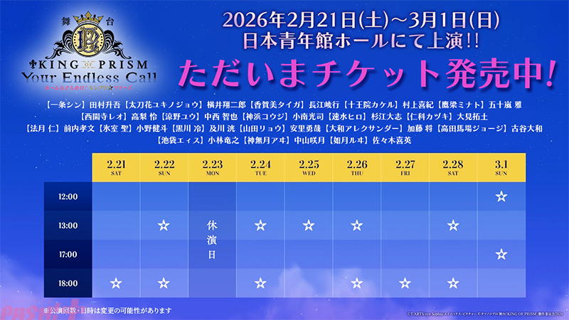 (C)T-ARTS / syn Sophia / エイベックス・ピクチャーズ / タツノコプロ/舞台「KING OF PRISM 」製作委員会 2026