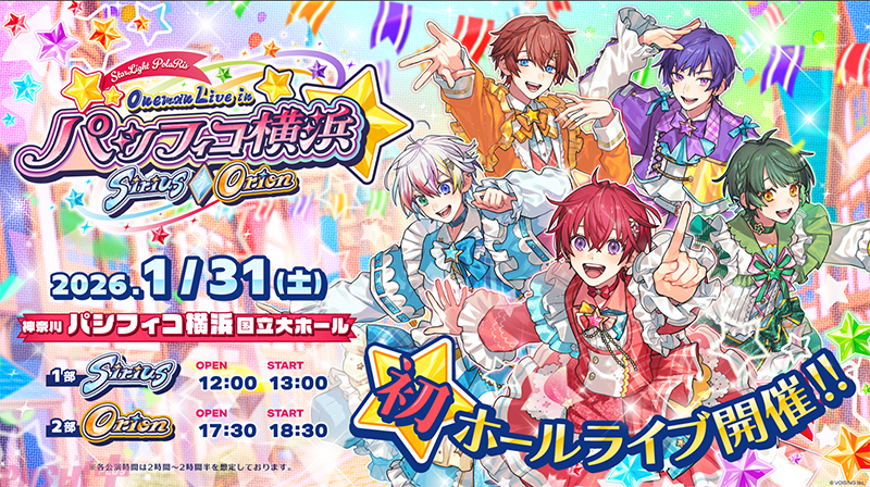 VOISING所属の2.5次元アイドルグループ「すたぽら」が自身初となるホールライブ『StarLight PolaRis One Man Live in パシフィコ横浜 Sirius / Orion』を2026年1月31日(土)に神奈川・パシフィコ横浜 国立大ホールにて開催することが決定しました。
