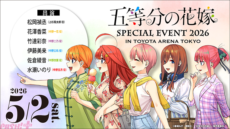 The post 『五等分の花嫁』スペシャルイベント「五等分の花嫁 SPECIAL EVENT 2026 in TOYOTA ARENA TOKYO」五つ子キャストの最新集合カットが特別公開” チケット特別先行受付もスタート first appeared on PASH! PLUS.
