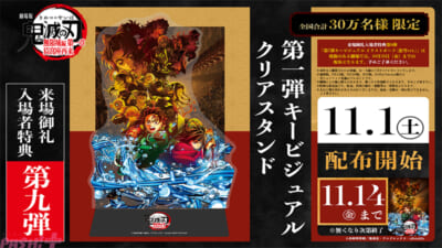 7月18日(金)より公開中である『劇場版「鬼滅の刃」無限城編 第一章 猗窩座再来』の来場御礼入場者特典第9弾として、「第1弾キービジュアルクリアスタンド」が11月1日(土)より配布決定となりました。