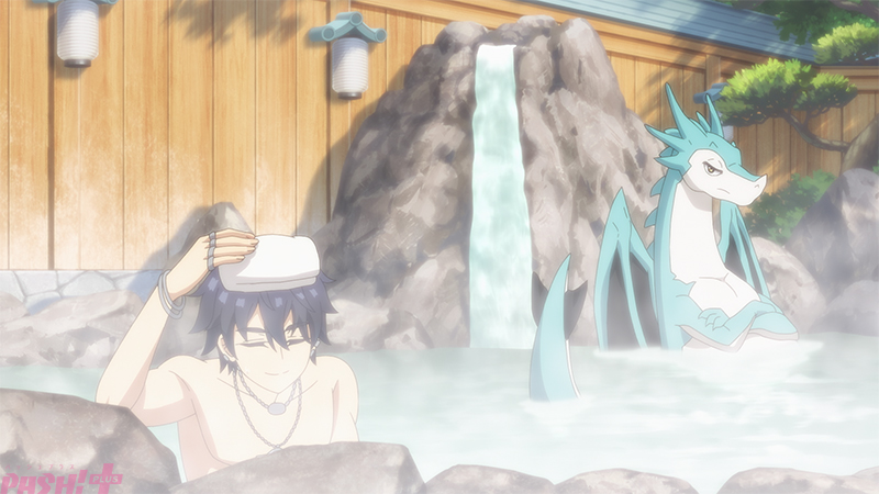 念願の温泉街に到着したクライ達。温泉を堪能するクライが遭遇したのは、のんびりと湯に浸かっているドラゴンだった!