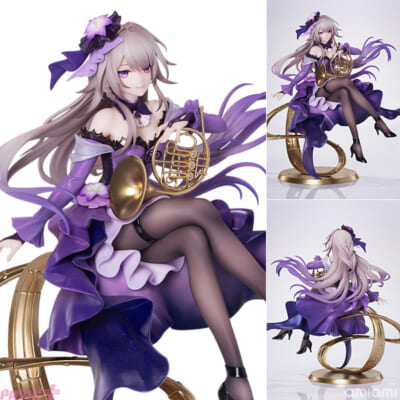 フレンチホルンをそっと抱きかかえ、気高く優雅に佇むヘルタの姿を立体化しました。紫のドレスは多層グラデーションとパール塗装で仕上げられ、神秘的な光を放ちながら気品あふれる雰囲気を演出。裾にはきらめくラメが散りばめられ、軽やかに舞うたびに星屑のように輝きます。