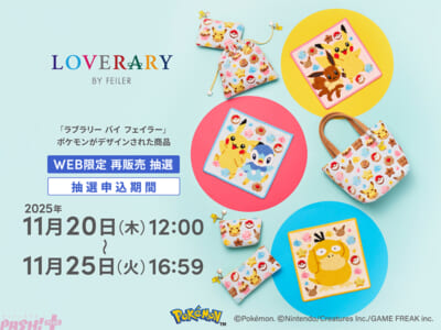 フェイラージャパンは、フェイラーのギフトコンセプトショップLOVERARY BY FEILER(ラブラリー バイ フェイラー)からポケモンがデザインされた商品の第2弾について、フェイラー公式オンラインショップ限定抽選にて、全アイテムを再販売します。今回が本商品の最終の販売となります。