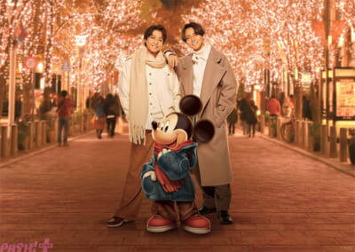解禁となったコートやマフラーなど冬らしい装いに身を包んだビジュアルについてKing & Princeのふたりは「素敵な丸の内の街並みを背景に、ベストフレンドであるミッキーとKing & Princeだからこその温かな雰囲気の3ショットになったと思います! 大切なお友達や家族と、同じように素敵な写真を是非この街で撮って欲しいです。」とコメント。