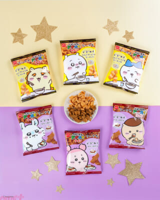 『ちいかわ ベビースタードデカイラーメン(とんこつしょうゆラーメン味)』は、作品に登場する”とんこつしょうゆラーメン”をイメージした商品。とんこつの風味と野菜の旨みをきかせた「とんこつしょうゆラーメン味」に仕上げました。『ちいかわ ベビースタードデカイラーメン(モダン焼き味)』は、作品に登場する”巨・モダン焼き”をイメージした商品。鰹節の風味と甘いソースが絶妙にマッチした「モダン焼き味」に仕上げています。