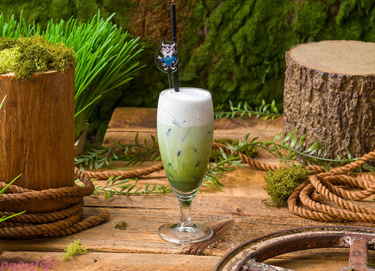 謎多きパウバートをイメージした竹炭入りの抹茶ラテ。特典コースター付き。