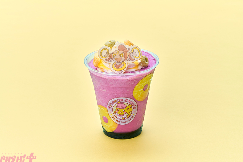 いたずらポケモンのフーパをイメージした、オレンジ風味のチョコレートフラッペ。ピンク色なのにチョコ味!? と驚くフラッペは、まるでフーパのいたずらみたい。爽やかなオレンジ風味に、カップの底のチョコソースを混ぜると、濃厚な味の変化を楽しめます。