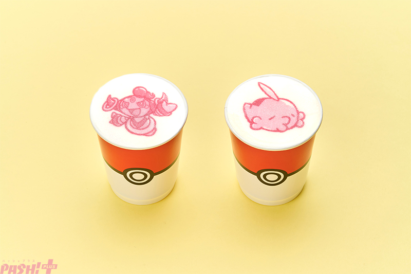 定番メニューのゲットラテは、ドーナツとの相性ばつぐん! 絵柄は、ピカチュウスイーツオリジナルデザインの、フーパとゴクリンの全2種から選べます。