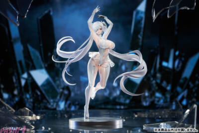 全身白一色のボディースーツ姿で立体化となる本アイテムは、衣装の光沢と透明感や特徴的なツインテールにも注目。また大きく露出した肌のつるすべ感も必見です。