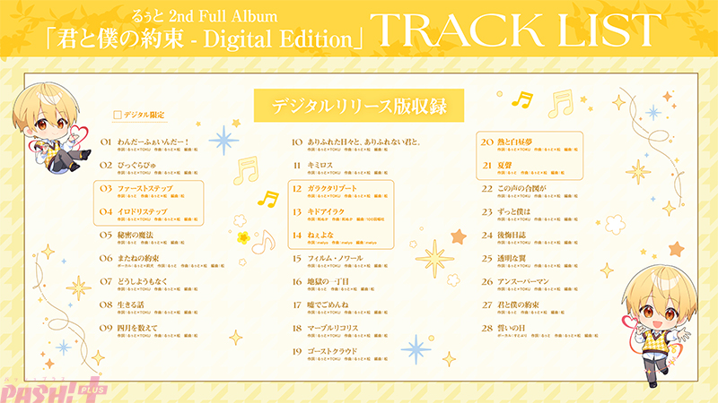 The post 「すとぷり」るぅと自身が手がけた2ndフルアルバム『君と僕の約束』のCD収録曲が一挙公開! デジタル版には和ぬかさん、meiyoさんの提供曲を含む全28曲を収録 first appeared on PASH! PLUS.