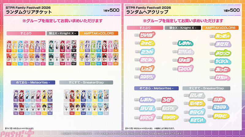 STPR所属の2.5次元アイドル・歌い手グループ「すとぷり」「Knight X – 騎士X -」「AMPTAKxCOLORS」「めておら – Meteorites -」「すにすて – SneakerStep Prod.STPR MUSIC」が出演する大型ライブイベント『STPR Family Festival!! 2026(すとふぇす)』のオフィシャルグッズが公開されました。