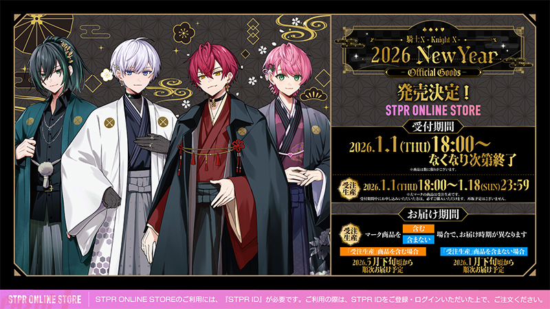STPR所属の2.5次元アイドル・歌い手グループ「すとぷり」「Knight X – 騎士X -」「AMPTAKxCOLORS」「めておら – Meteorites -」によるウィンターシーズン限定グッズが2026年1月1日(木)よりSTPR ONLINE STOREにて販売開始となります。