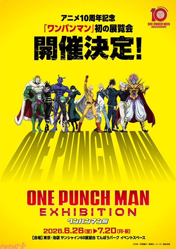 アニメ『ワンパンマン』10周年を記念して、作品初の展覧会『アニメ10周年記念「ワンパンマン展」』が、2026年6月26日(金)~7月20日(月・祝)に東京・池袋のサンシャイン60 展望台 てんぼうパーク イベントスペースにて開催されることが決定。本日はウルトラティザービジュアルを解禁。オリジナルグッズも多数販売予定です。