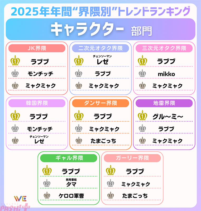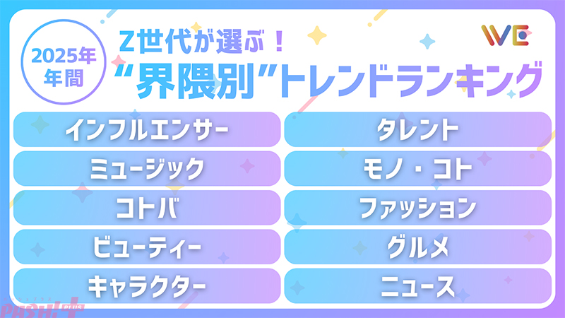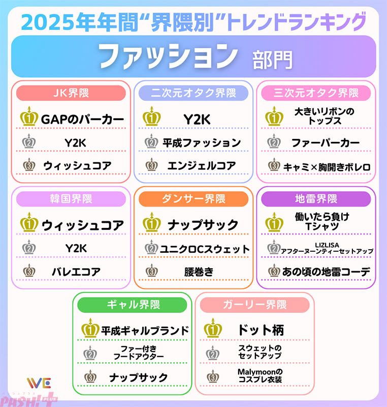 The post 「Y2K」「ミャクミャク」…Z世代の“界隈別”トレンドは? WE LABOが「2025年年間Z世代が選ぶ!“界隈別”トレンドランキング」を発表 first appeared on PASH! PLUS.