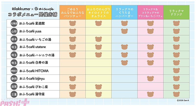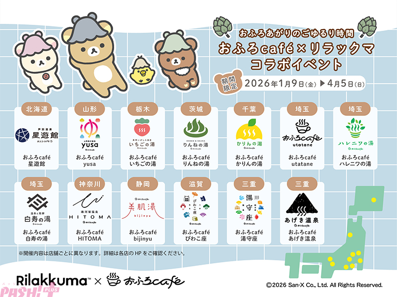 The post 新年はリラックマとおふろタイムを! かわいいグッズ&メニューも登場のおふろcafeコラボが開催 first appeared on PASH! PLUS.