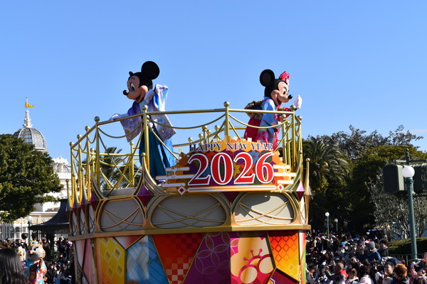 2026年1月1日(12日まで)東京ディズニーランドでは、お正月ならではの特別なイベントがスタートしました! パークに一歩足を踏み入れると、そこはもう新年ムード全開。晴れやかな和の装いに身を包んだディズニーキャラクターたちが、新年のごあいさつを届けてくれます!