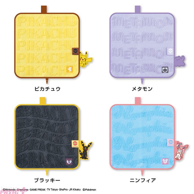 タオルのふりしてコソッとポーチの「どっとポーチ」に、ポケモンデザインから新たに4アイテムが登場! ピカチュウ・メタモン・ブラッキー・ニンフィアの4種類です。