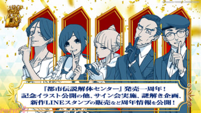 集英社ゲームズは、本日2026年2月13日で一周年を迎えた『都市伝説解体センター』において、記念イラスト公開の他、様々な新情報を発表。『都市伝説解体センター』開発の墓場文庫によるサイン会の実施のほか、一周年記念特製謎解き企画、新作LINEスタンプの販売情報などの新情報を公開しました。