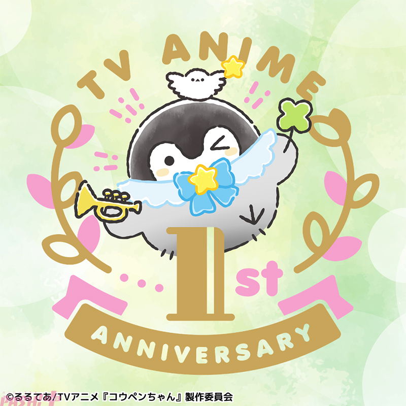 このたび、アニメ放送1周年記念ロゴが完成! おめかししたコウペンちゃんが、邪エナガさんと一緒にニッコリポーズを決める、素敵なロゴができあがりました。お祝いムードたっぷりのロゴは、さまざまな記念展開に登場!