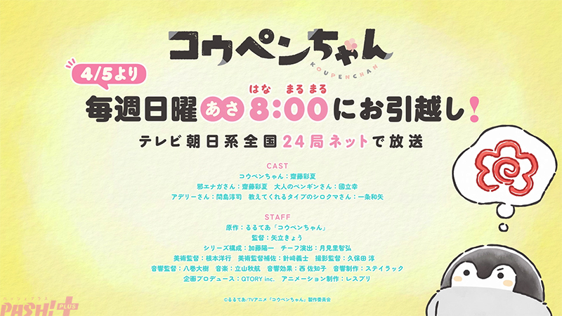 毎週日曜あさ8時00分(はなまるまる)にお引越しする事が決定した事にあわせてお引越しロゴ&ビジュアルも公開! お子さまから大人まで、家族みんなで楽しめるハートフルな物語を、ぜひ新しい放送時間でもお楽しみください。さらに、TVアニメ2年目の映像を先取りしたアニメ第3弾PVも到着しました。