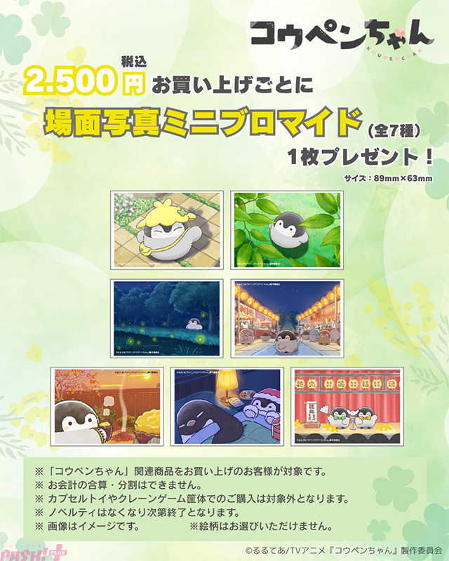 配布条件:「コウペンちゃん」関連商品を2,500円(税込)購入ごとに1枚プレゼント