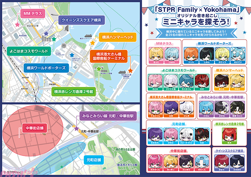 横浜の街に隠れている「STPR×Yokohama」オリジナル描き起こしのミニキャラを探してみよう! 全29名のミニキャラを見つけられるかな?