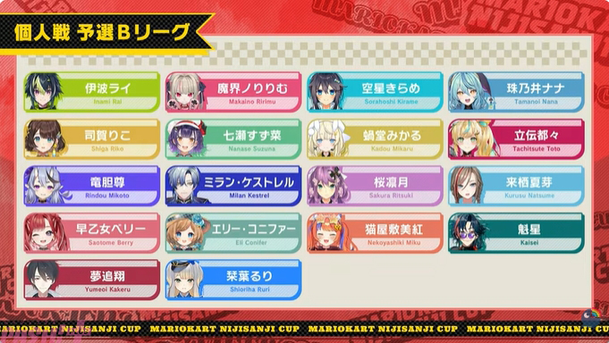 「第8回マリオカートにじさんじ杯」は、『マリオカート ワールド』を使用したにじさんじ大会となり、伊波ライと榊ネスのふたりが新サポートMCとして参加します。