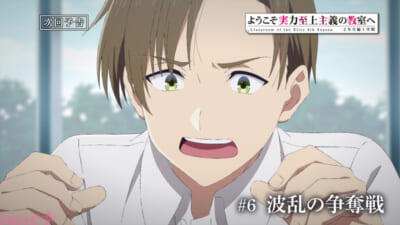 TVアニメ『ようこそ実力至上主義の教室へ 4th Season 2年生編1学期』より、本作第6話「波乱の争奪戦」のあらすじ、先行カット、WEB予告が解禁されました。