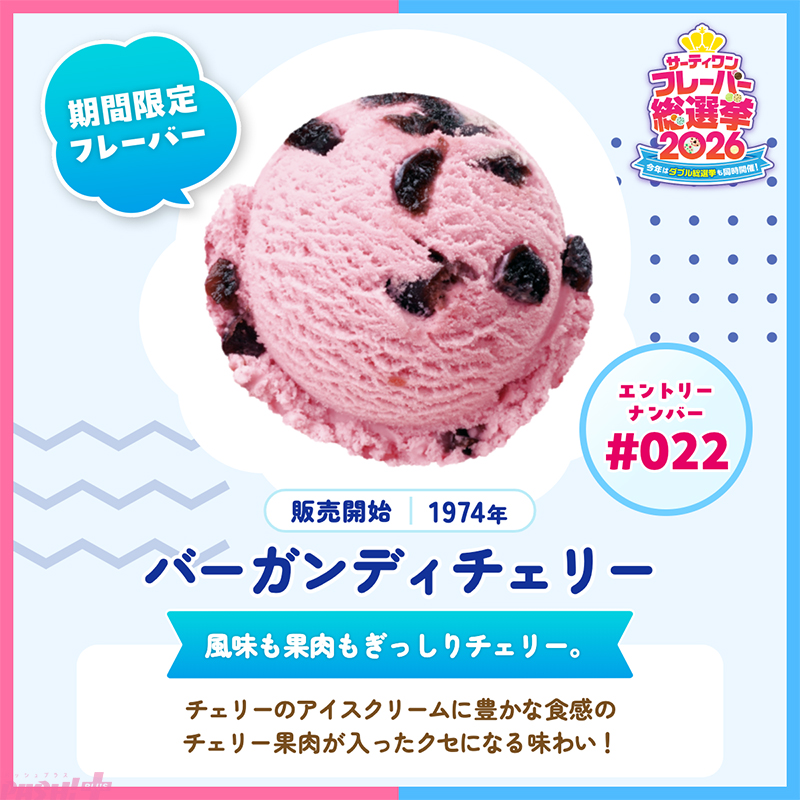 B-R サーティワン アイスクリームは、「サーティワン フレーバー総選挙 2026」を開催中。中間結果が発表されました。