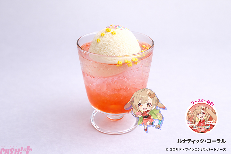 ピーチソーダ+グレナデンシロップ、バニラアイス、スターシュガー、ジュエリーシュガー