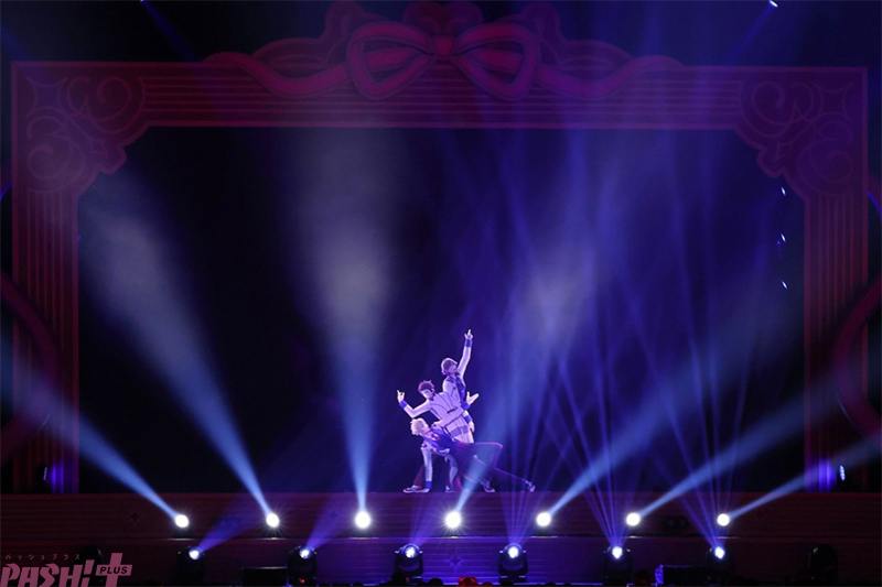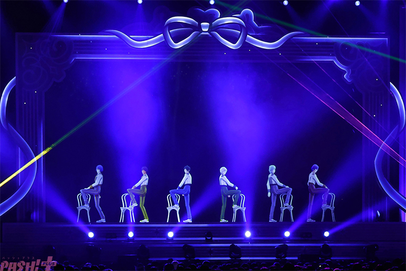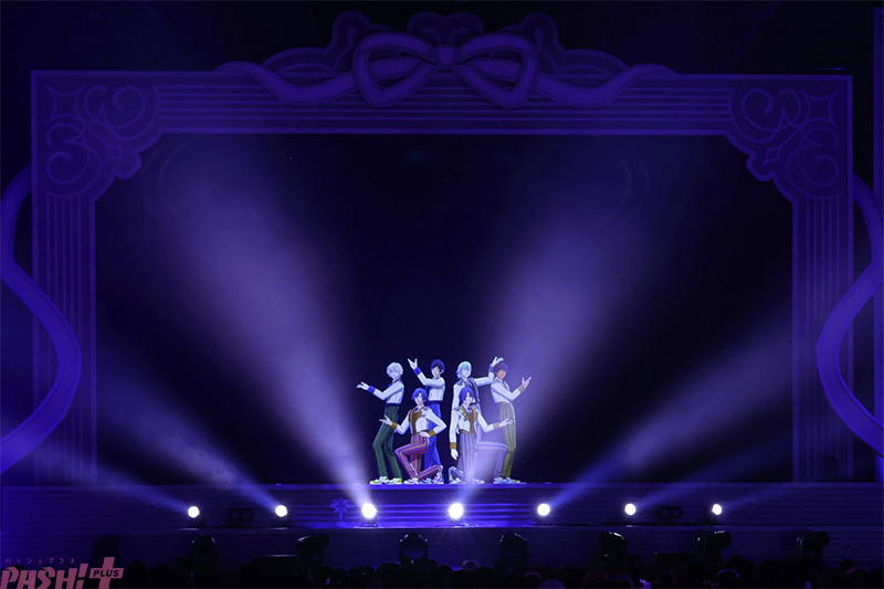 続く「夢ノ聖火」では、真斗、トキヤ、セシル、藍、綺羅、シオンが登場。椅子を用いた複雑なフォーメーションと妖艶なダンスに、客席からは思わず悲鳴にも似た歓声が上がった。B公演のトークでは、この6人は歌にこだわりのあるメンバーも多くレッスンに多くの時間を費やしたことや、歌うたびに表現の可能性を感じたこと、またその過程でメンバー同士の絆がより深まったというエピソードが明かされた。