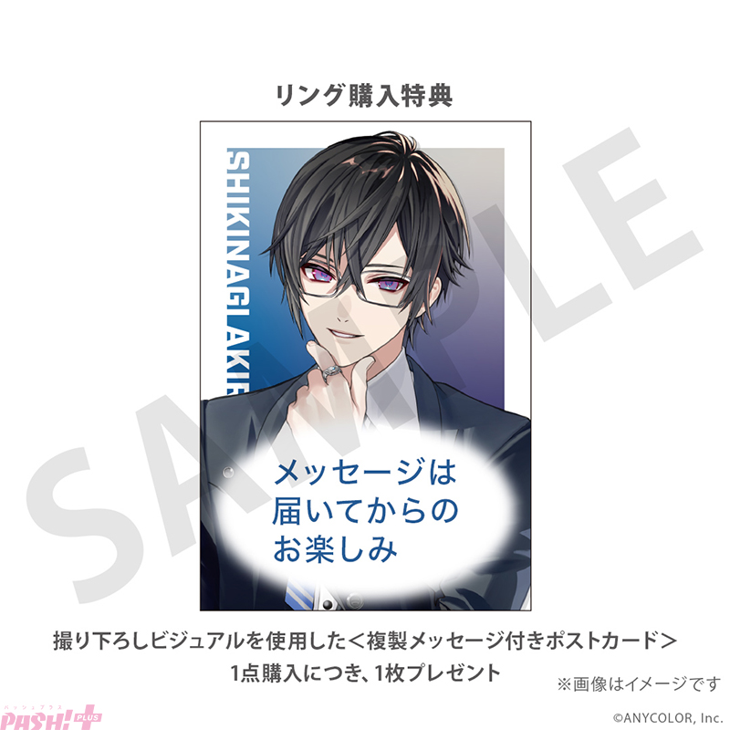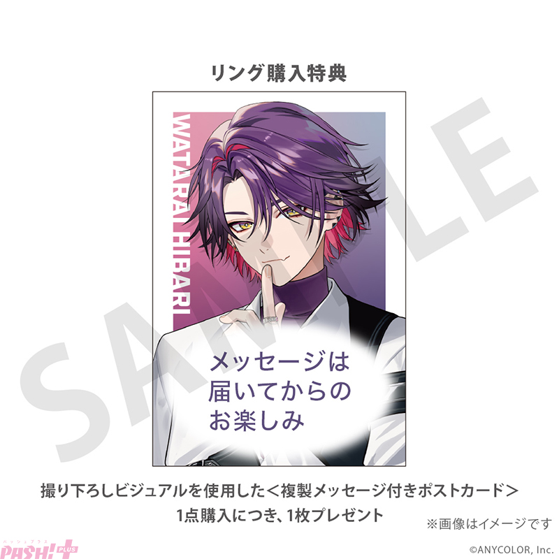 「インデックスリング」としてだけではなく、お好きな指に着けられるよう幅広いサイズ展開でのご用意です。別売りのアクリルジュエリースタンドに飾っても、お楽しみいただけます。1点購入につき、撮り下ろしビジュアルを使用した複製メッセージ付きポストカードを1枚プレゼント。