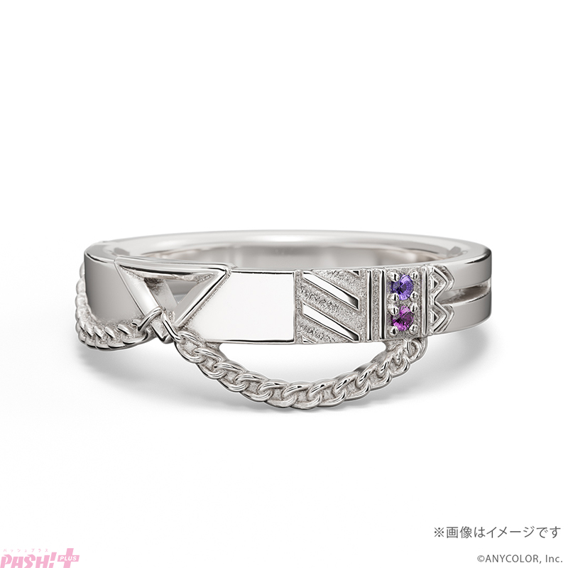 四季凪アキラ監修のファッションリング。普段の衣装をモチーフにチェーンや象徴的な模様を取り入れ、丸みを抑えたクールなフォルムが魅力のデザインです。