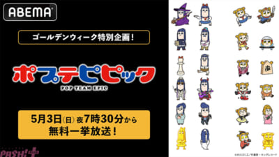 ABEMAは、ゴールデンウィーク特別企画「アニメ300作品以上無料大放出祭」の一環として、2026年5月3日(日)夜7時30分より、TVアニメ『ポプテピピック』の無料一挙放送を実施します。