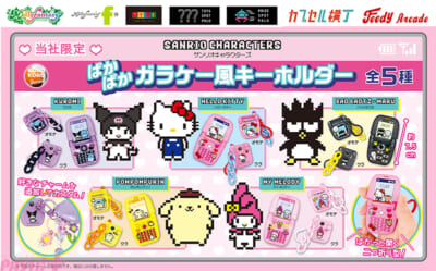 イオンファンタジーは、サンリオのキャラクターたちのカプセルトイ用商品『サンリオキャラクターズ ぱかぱかガラケー風キーホルダー』を、アミューズメント施設「モーリーファンタジー」「PALO」、カプセルトイ専門店「TOYS SPOT PALO」「カプセル横丁」などに設置する当社オリジナル完全キャッシュレスカプセルトイマシン「かぷえぼ」で4月30日(木)より順次展開いたします。