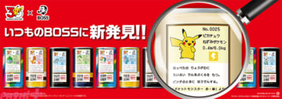 本タイアップを記念し、長年愛飲いただいている主力商品5品(「ボス レインボーマウンテンブレンド」「ボス 贅沢微糖」「ボス 無糖ブラック」「ボス カフェオレ」「プレミアムボス 微糖」)を「ポケモン図鑑缶」としてパッケージをリニューアルします。