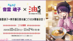 PASH! PLUS 【あおぎり高校】音霊魂子のコラボメニューや記念グッズが登場! 油そばの名店「東京麺珍亭本舗」とのコラボが開催 ムービックは、VTuberグループ『あおぎり高校』の所属メンバー「音霊魂子」と元祖油そば専門店「東京麺珍亭本舗」とのコラボ施策を、2025年10月11日~11月24日まで開催します。 自他ともに認める大のラーメン好きである音霊魂子が... 2025.10.05 PASH! PLUS